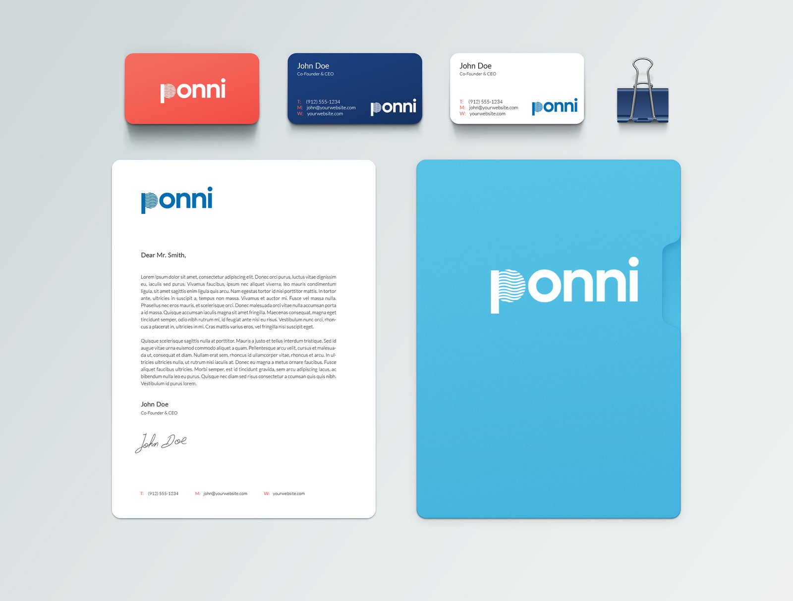 Ponni, besides being the name of the finance company, is also a well known river. The prosperity that comes from the water of the river and from the circulation of money ( like the movement of water) is the thought behind this identity design.